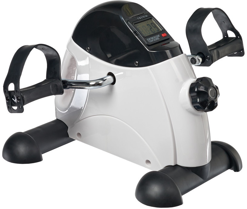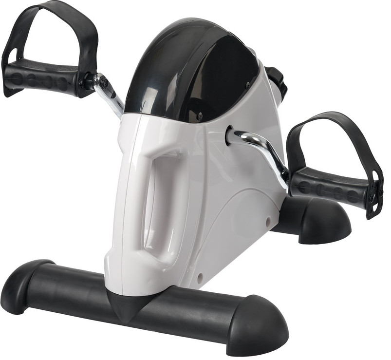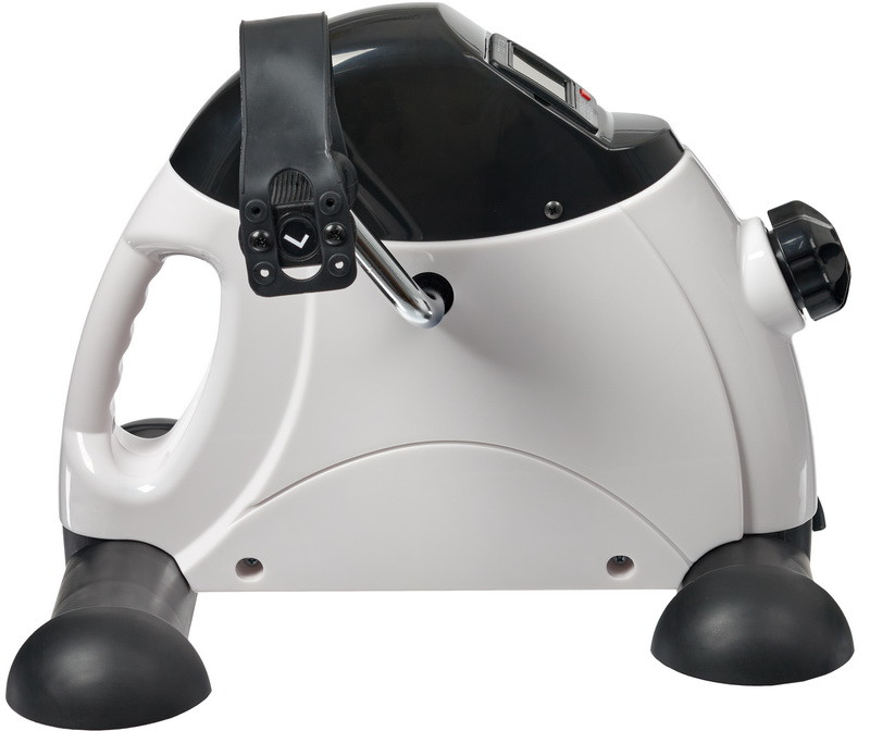 Этот небольшой велотренажёр можно установить не только на полу, но и на любой другой ровной поверхности и использовать его не только для тренировки ног, но и рук: просто ослабьте натяжение ремня до необходимого и крутите педали.