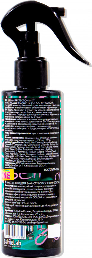 Selfielab Мист-уход для защиты волосВ данный момент этот товар отсутствует в продаже. Возможно, у нас найдется аналогичный или похожий товар здесь. Серия: MY GOLOVA SPF защита, мягкие и блестящие волосы, восстановление без утяжеления. |