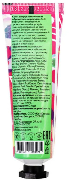 Selfielab Крем для рук питательныйВ данный момент этот товар отсутствует в продаже. Возможно, у нас найдется аналогичный или похожий товар здесь. Серия: Young SOS формула с неповторимым ароматом спелой маракуйи поднимет настроение за одну минуту! Экстракт малины станет надёжным защитником для нежной кожи рук: восстановит, освежит, сделает ее мягкой. Африканское масло ши увлажнит, напитает и зарядит витаминами. |