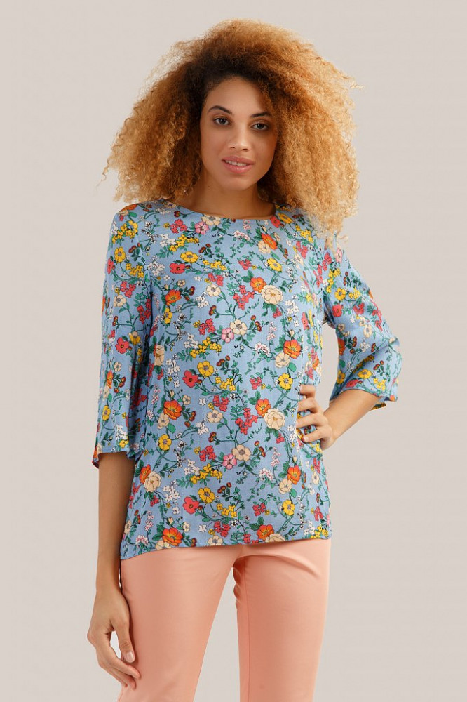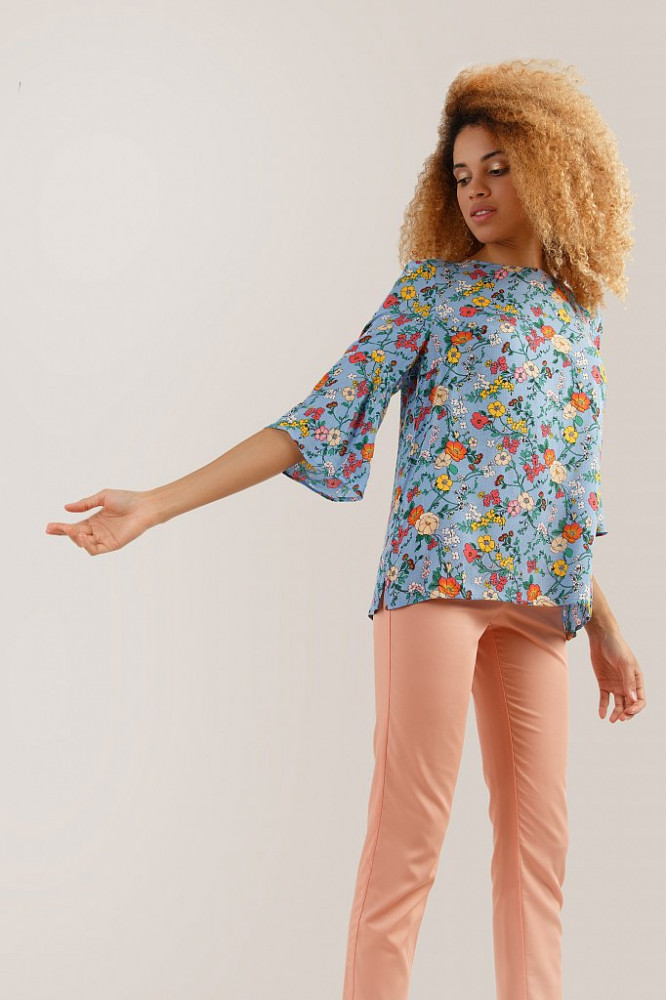 Ткань напомнила советскую вискозу, не переработанную, как в Mango, и она как бы "сложная". В блузке удачно всё: и универсальный фасон (незатейливый и удобный), и ткань (невесомая), и расцветка (оптимистичная) Сядет после стирки, скорее всего.