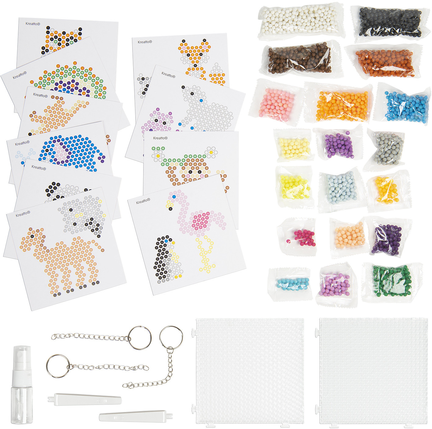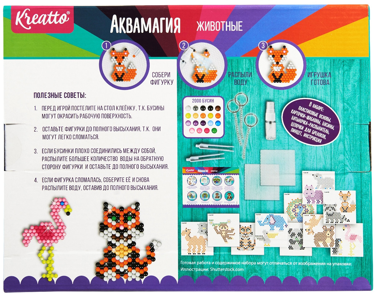 Креатто Мозаика водная «Животные»В данный момент этот товар отсутствует в продаже. Возможно, у нас найдется аналогичный или похожий товар здесь. С набором Аквамагия ваш ребенок сможет создать из разноцветных бусинок 20 потрясающих фигурок в виде обитателей фермы и их атрибутов. Расположите картинку-шаблон под прозрачную основу так, чтобы нарисованные на шаблоне бусины совпали с углублениями на основе. Соберите фигурку по шаблону, намочите все бусины водой из пульверизатора и оставьте на 1-2 часа до полного высыхания. За это время все бусинки склеятся между собой, образовав цельную фигурку. Необыкновенная поделка готова! Такое увлекательное занятие развивает у ребёнка мелкую моторику, аккуратность, усидчивость, умение работать по образцу и творческое мышление. |