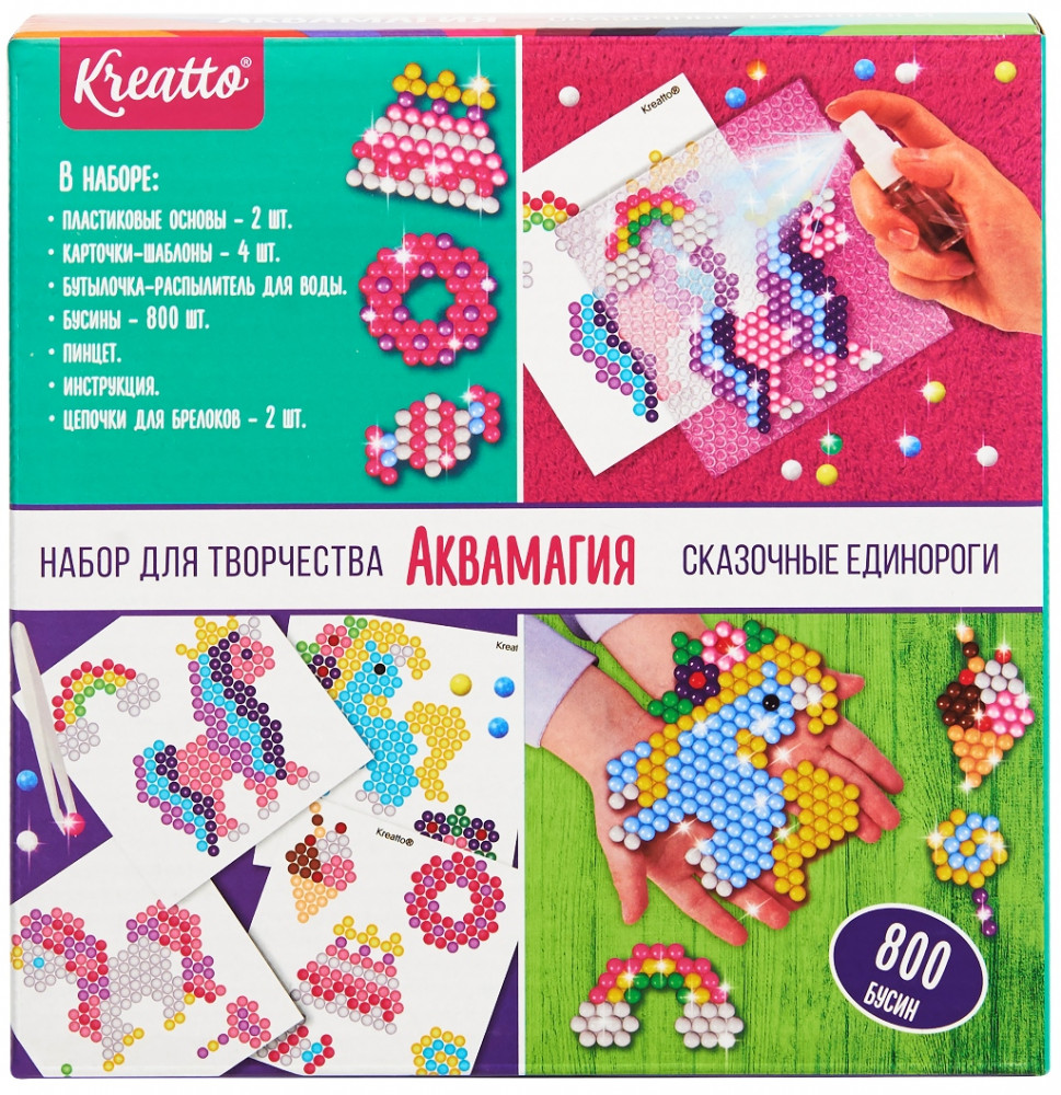 Креатто Мозаика водная «Сказочные единороги»В данный момент этот товар отсутствует в продаже. Возможно, у нас найдется аналогичный или похожий товар здесь. С набором Аквамагия ваш ребенок сможет создать из разноцветных бусинок 20 потрясающих фигурок в виде обитателей фермы и их атрибутов. Расположите картинку-шаблон под прозрачную основу так, чтобы нарисованные на шаблоне бусины совпали с углублениями на основе. Соберите фигурку по шаблону, намочите все бусины водой из пульверизатора и оставьте на 1-2 часа до полного высыхания. За это время все бусинки склеятся между собой, образовав цельную фигурку. Необыкновенная поделка готова! Такое увлекательное занятие развивает у ребёнка мелкую моторику, аккуратность, усидчивость, умение работать по образцу и творческое мышление. |