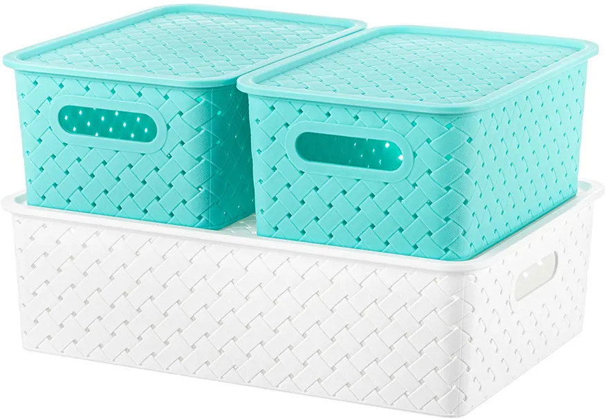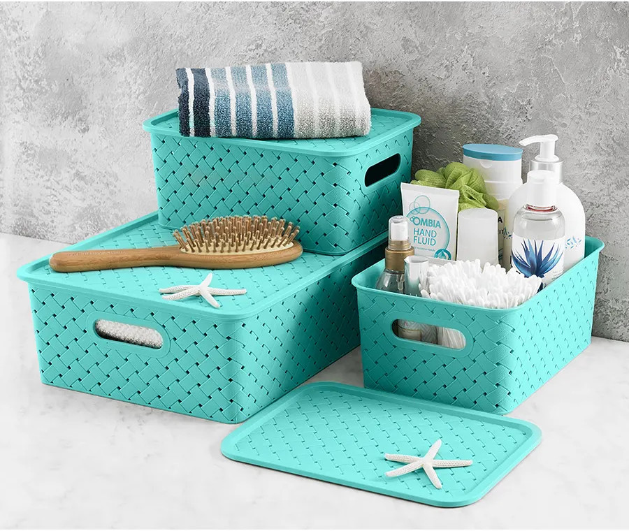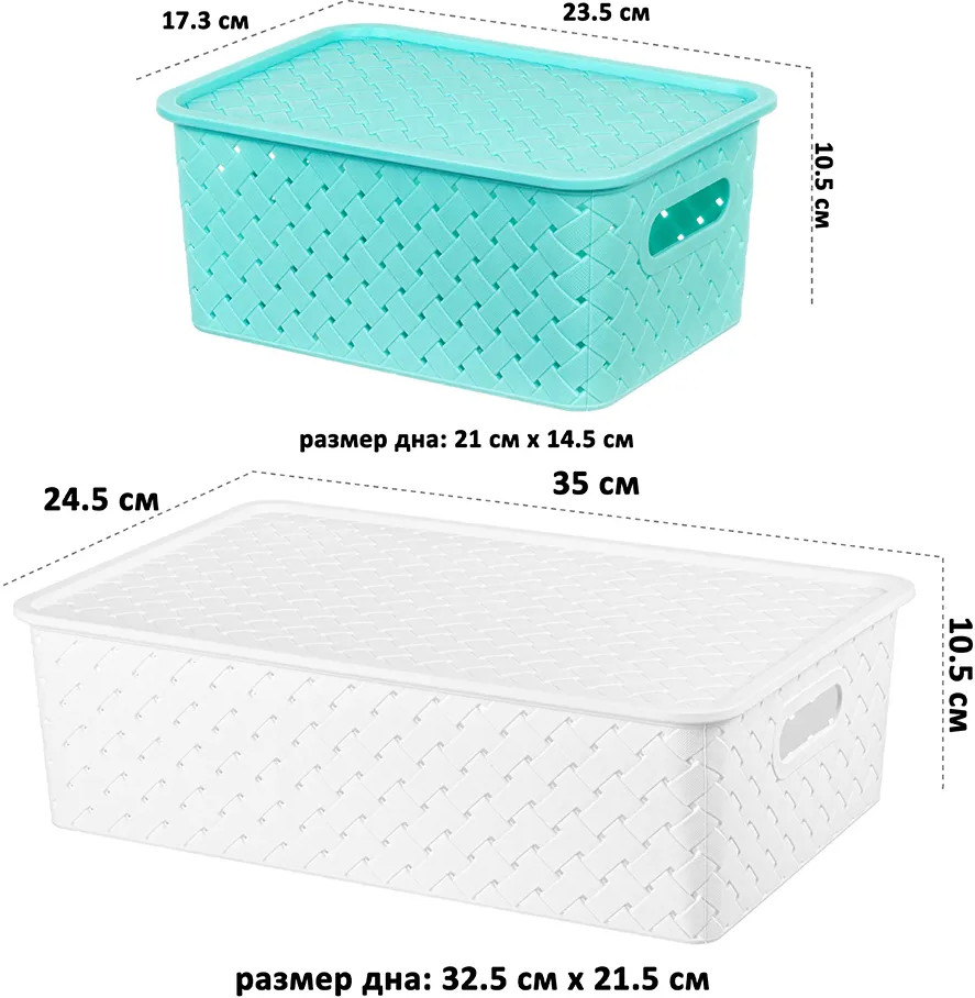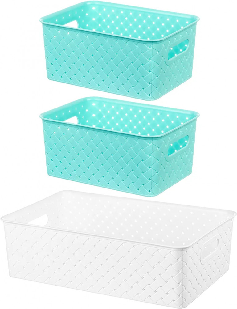 Набор из 3-х корзин с ручками и крышками (7,5 литра, 3 литра) можно разместить на кухне, в ванной, прихожей, офисе, гараже или в шкафу. Большие коробки подойдут для бытовой химии, игрушек, одежды (для шапок, перчаток, белья, носков), а маленькие корзинки — для канцелярии, косметики, украшений, рукоделия (для пряжи, вязания) и других мелочей. Контейнеры 7,5 литра подойдут для документов и бумаги А4. Корзины выполнены из пищевого полипропилена и украшены декоративными рельефными узорами с отверстиями для вентиляции. Полностью безопасны и подходят для продуктов. Используйте их для овощей, как хлебницы или как фруктовые корзинки. Можно использовать как подарочные боксы: собрать наборы для мужчин и женщин, девушек и парней, мальчиков и девочек. Пластиковые корзины из серии «Береста» привлекательно выглядят и помогут создать систему для хранения вещей в едином стиле или гардеробную систему в вашей прихожей!