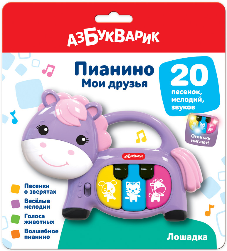 💳 Оплатить за товар можно при получении 🇰🇿 Есть бесплатная доставка по Казахстану от 1 дня 🎁 Копите бонусы с каждой покупки Миниатюрное пианино в виде забавной лошадки разработано специально для малышей. Игрушка работает в двух режимах. В режиме «Песенки и мелодии» ребенок при нажатии на клавиши послушает песенки о зверятах, любимые потешки и веселые мелодии. |