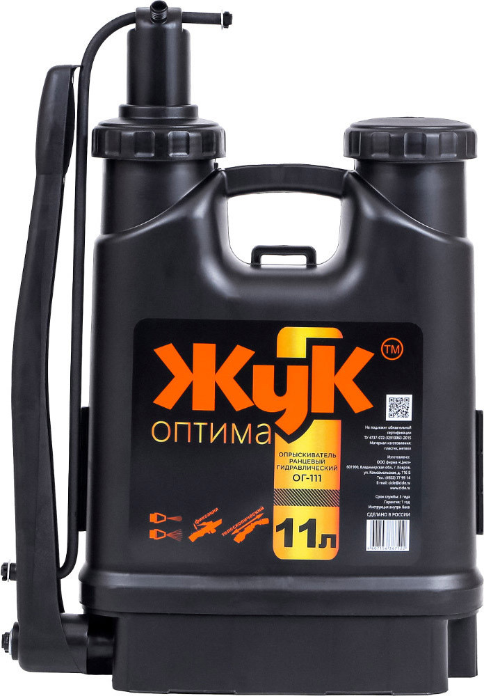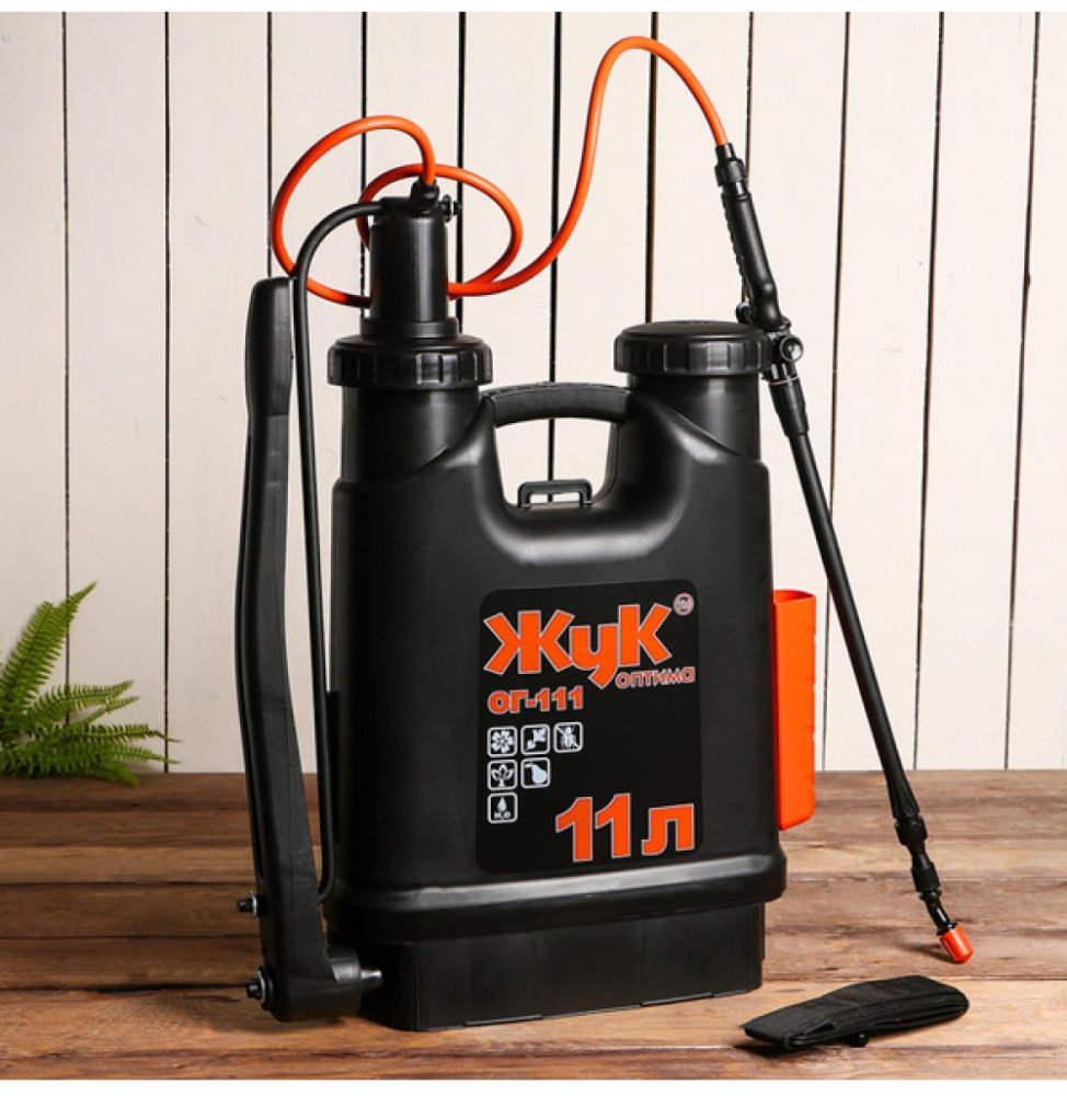 Ранцевый опрыскиватель Жук Оптима предназначен для обработки садовых участков с большой площадью. С его помощью осуществляется полив и подкормка растений, деревьев и кустарников, мытье окон, стекол и прочие хозяйственные работы. Опрыскиватель оснащен плечевыми ремнями с регулируемой длиной, которые обеспечат разгрузку спины при работе и снизят утомляемость. Благодаря телескопическому брандспойту длиной 650-970 мм достигается большой радиус распыла — до 1680 мм.