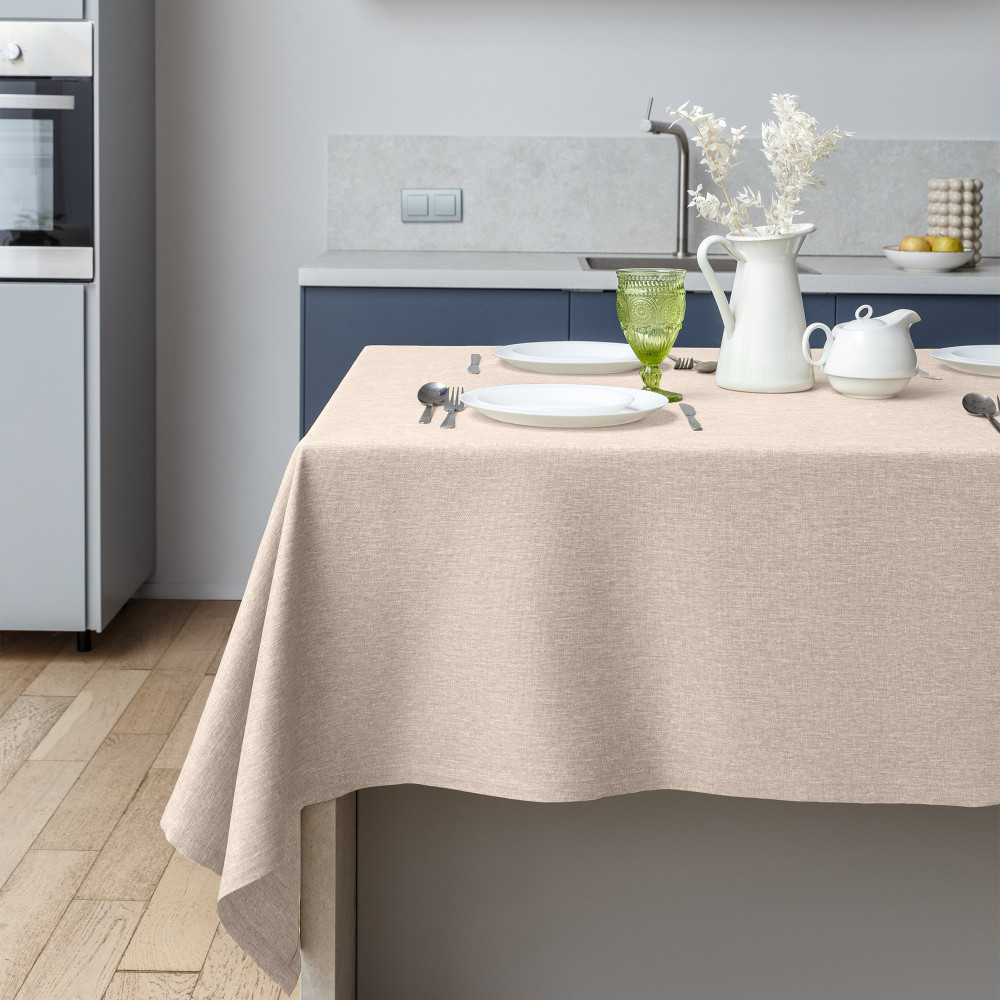 Скатерть замечательная! Заказывала зеленую и в полоску из этой серии. Жесткость ткани нравится держит форму и не катается.