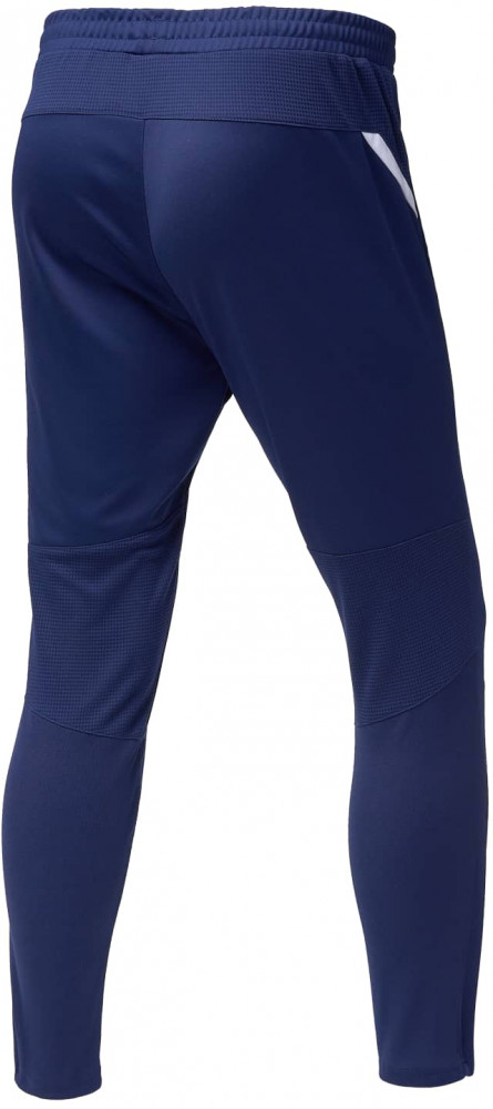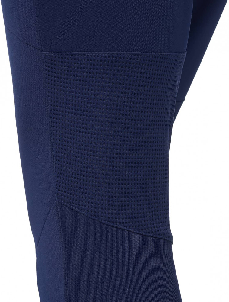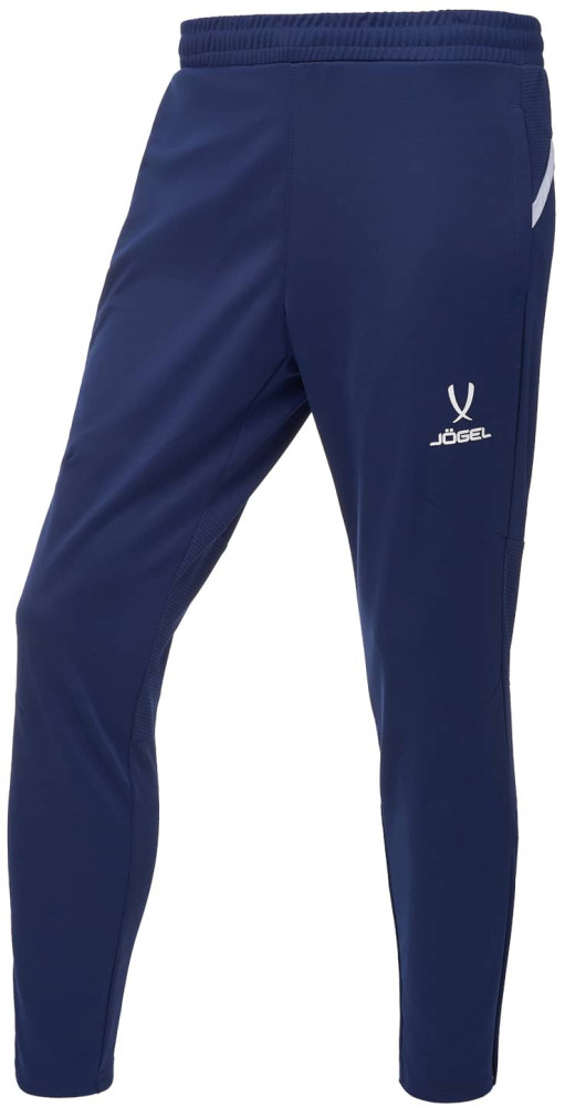 Сочетание трех видов высокотехнологичной ткани учитывает все потребности спортсмена. Сетчатые вставки, расположенные на фигурной кокетке сзади и на задней поверхности колена, обеспечивают качественное воздухоотведение в местах, требующих дополнительной вентиляции. Идеальное прилегание достигается использованием рубчатой ткани на задней поверхности брюк, что позволяет спортивным штанам точно подстраиваться под движения тела, а для оптимальной посадки спереди на колене проработано решение в виде вытачек. Основная ткань имеет специальное переплетение «Double Weave». Эластичный пояс надежно фиксирует изделие на бедрах при помощи завязок-шнурков. Боковые карманы застегиваются на молнию, а с левой стороны размещена контрастная вышивка «Jögel».