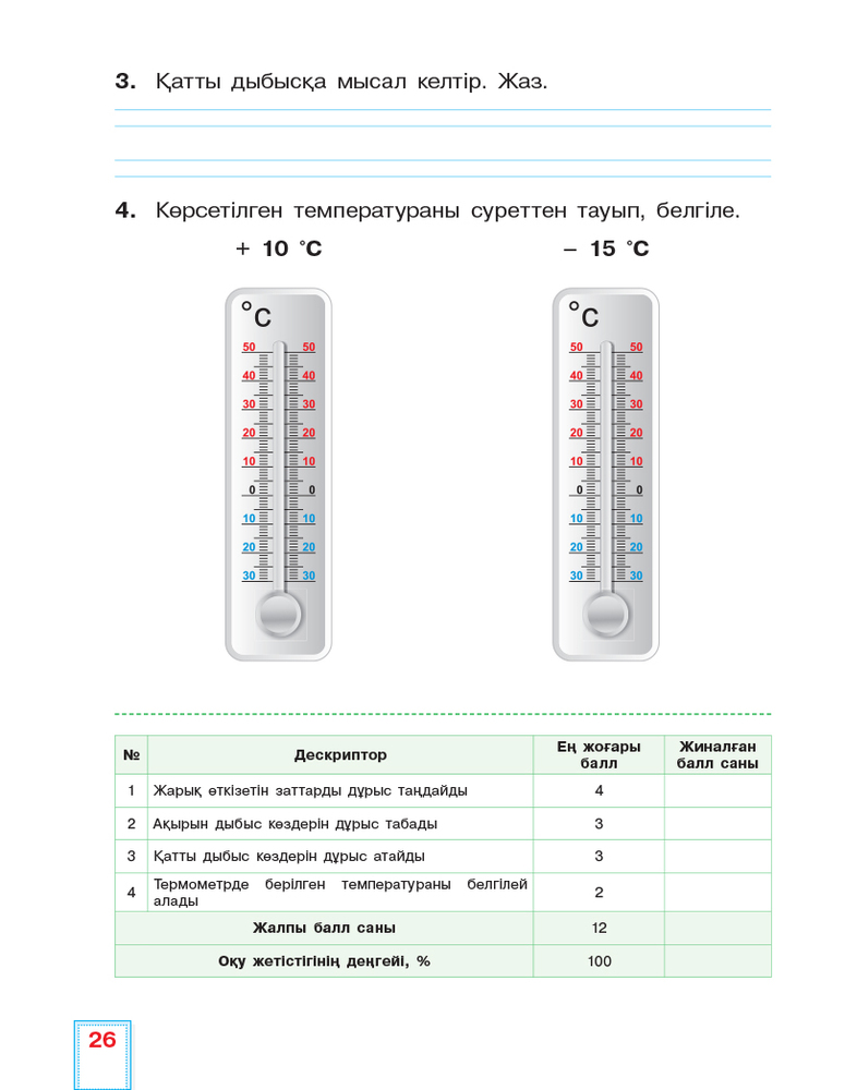 💳 Оплатить за товар можно при получении 🇰🇿 Есть бесплатная доставка по Казахстану от 1 дня 🎁 Копите бонусы с каждой покупки Ұсынылып отырған құралда бастауыш сыныпта білім алатындарға критериальды (жиынтық) бағалауға арналған материалдар берілген. Жиынтық бағалау тоқсан бойында (олар тарау / бөлім бойынша немес өтілген тақырыптарға арналады (БЖБ), тоқсан соңында (тоқсандық жиынтық бағалау ТЖБ) жүргізіледі. |