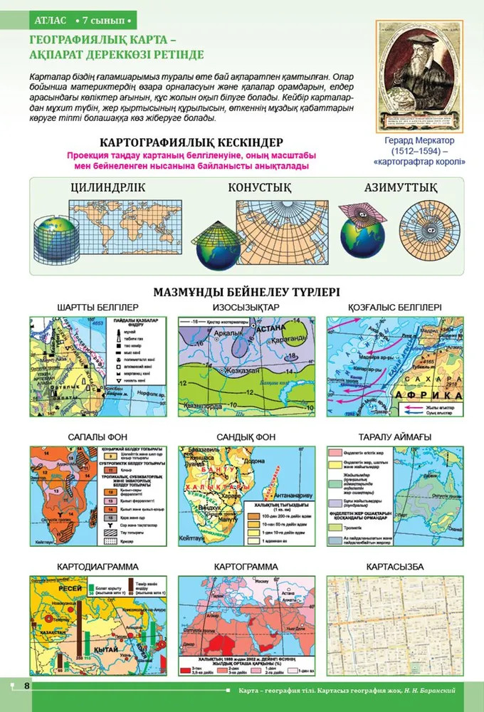 Атлас. География. 7 сынып+37 качество яркое оформление наглядность казахский язык информативность