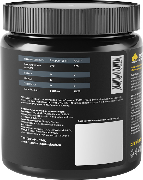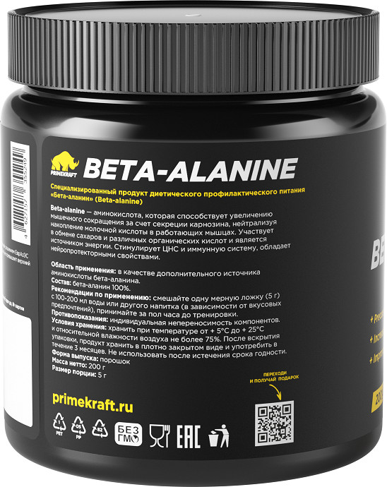 PRIMEKRAFT Бета-аланин-20% +136 увеличивает выносливость даёт энергию качественный продукт для тренировок покалывание