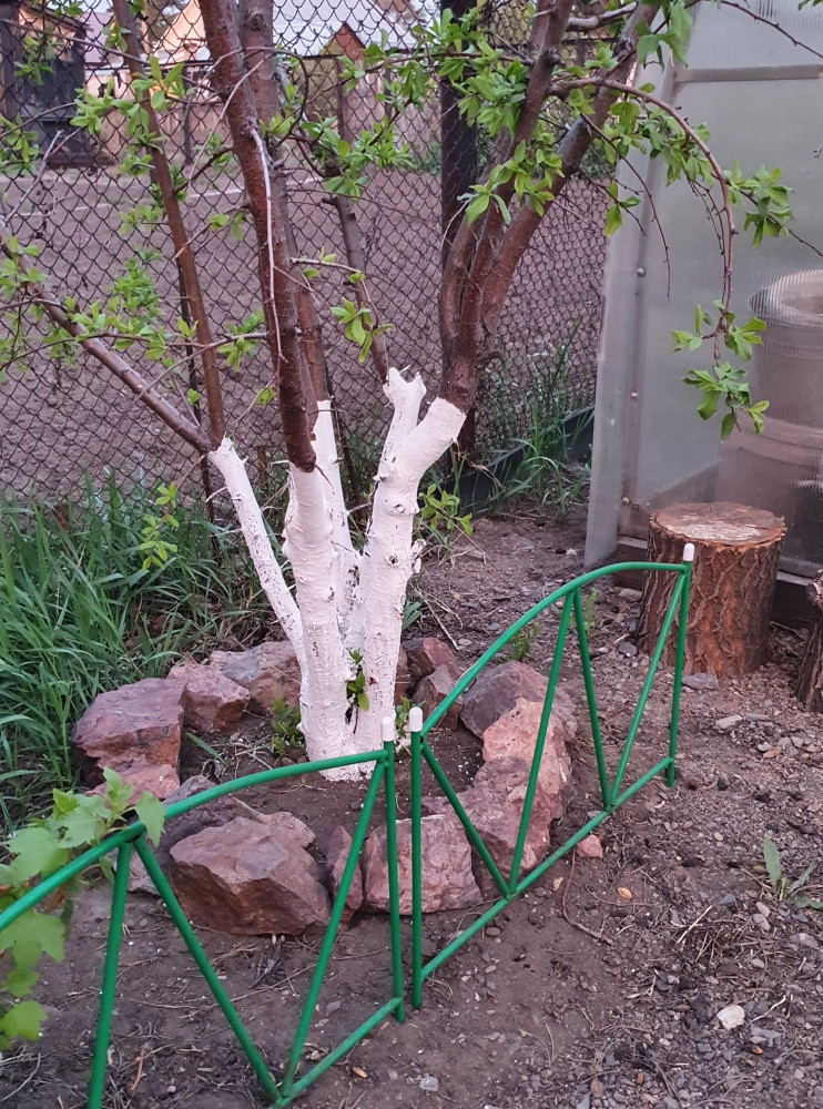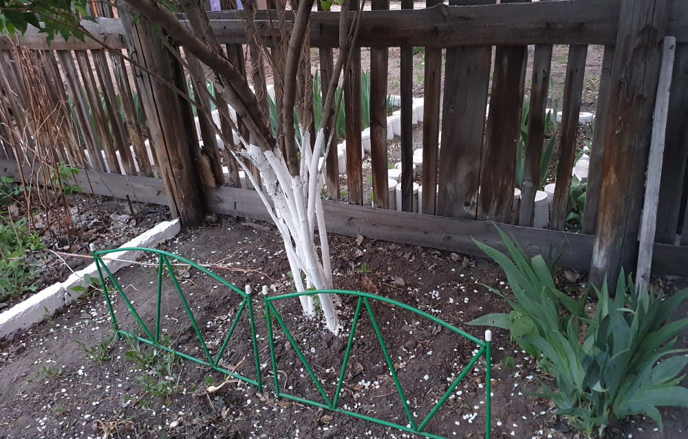 Не нашла на упаковке, в каких пропорциях разводить, сделала на глаз, чтобы было не сильно жидко, примерно на 3 литра воды. Хватило на 6 молодых дерева, два куста и еще осталось на клумбы. С клумб, конечно, сошла известь при поливе, на деревьях держится хорошо.