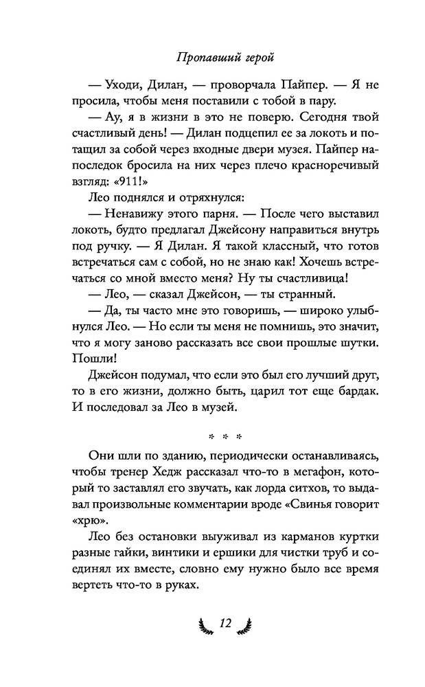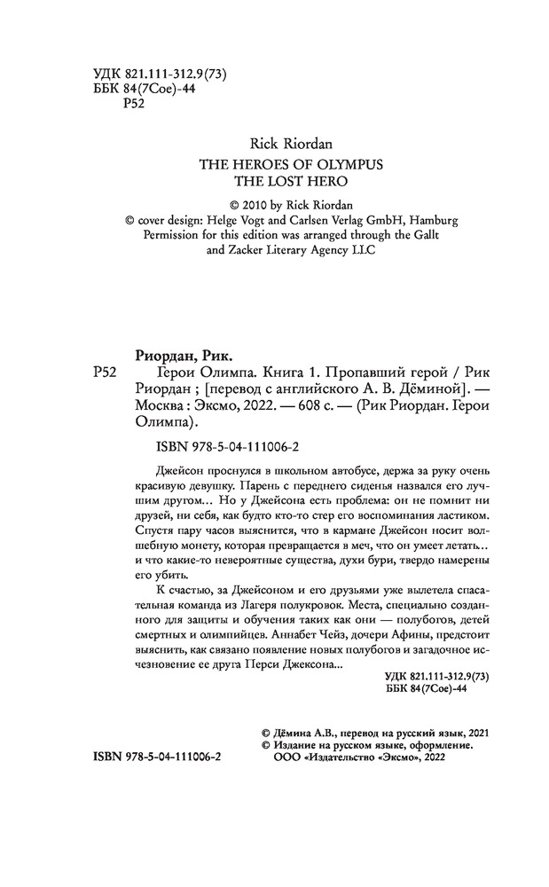 Герои Олимпа. Книга 1. Пропавший геройВ данный момент этот товар отсутствует в продаже. Возможно, у нас найдется аналогичный или похожий товар здесь. Серия: Рик Риордан. Герои Олимпа (другое оформление) Джейсон проснулся в школьном автобусе, держа за руку очень красивую девушку. Парень с переднего сиденья назвался его лучшим другом... Но у Джейсона есть проблема: он не помнит ни друзей, ни себя, как будто кто-то стер его воспоминания ластиком. Спустя пару часов выяснится, что в кармане Джейсон носит волшебную монету, которая превращается в меч, что он умеет летать... и что какие-то невероятные существа, духи бури, твердо намерены его убить. К счастью, за Джейсоном и его друзьями уже вылетела спасательная команда из Лагеря полукровок. Места, специально созданного для защиты и обучения таких, как они, — полубогов, детей смертных и олимпийцев. |