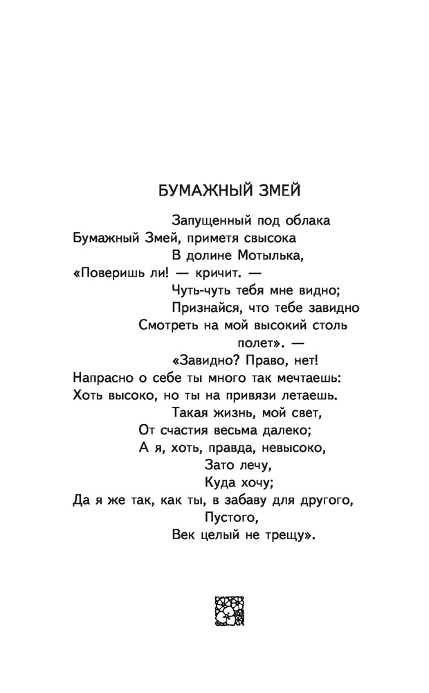 💳 Оплатить за товар можно при получении 🇰🇿 Есть бесплатная доставка по Казахстану от 1 дня 🎁 Копите бонусы с каждой покупки Серия: Внеклассное чтение (Хорошие книги в школе и дома) Иногда мы бываем похожи на беспечную Стрекозу, а иногда страдаем от собственного незнания, как Мартышка. Хорошо не попасть в такую историю, как в басне «Ворона и Лисица», ведь «Уж сколько раз твердили миру, что лесть гнусна, вредна, да все не впрок, и в сердце лесть всегда отыщет уголок...». Морали-выводы басен Крылова давно превратились в крылатые выражения, помогающие всем ориентироваться в окружающем мире и воспринимать достоверные ценности. |