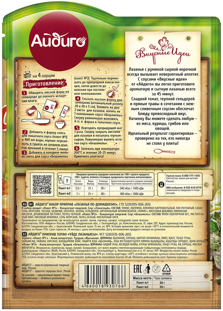 Айдиго Лазанья по-домашнемуВ данный момент этот товар отсутствует в продаже. Возможно, у нас найдется аналогичный или похожий товар здесь. Серия: Вкусные идеи Лазанья с румяной сырной корочкой всегда вызывает невероятный аппетит. С соусами «Вкусные идеи» вы легко приготовите ароматную и сытную лазанью всего за 45 минут! Сладкий томат, терпкий сельдерей и пряные травы в сочетании с нежным сливочным соусом обеспечат блюду превосходный вкус. Начинку вы можете выбрать любую — из мяса, курицы, грибов или овощей. |