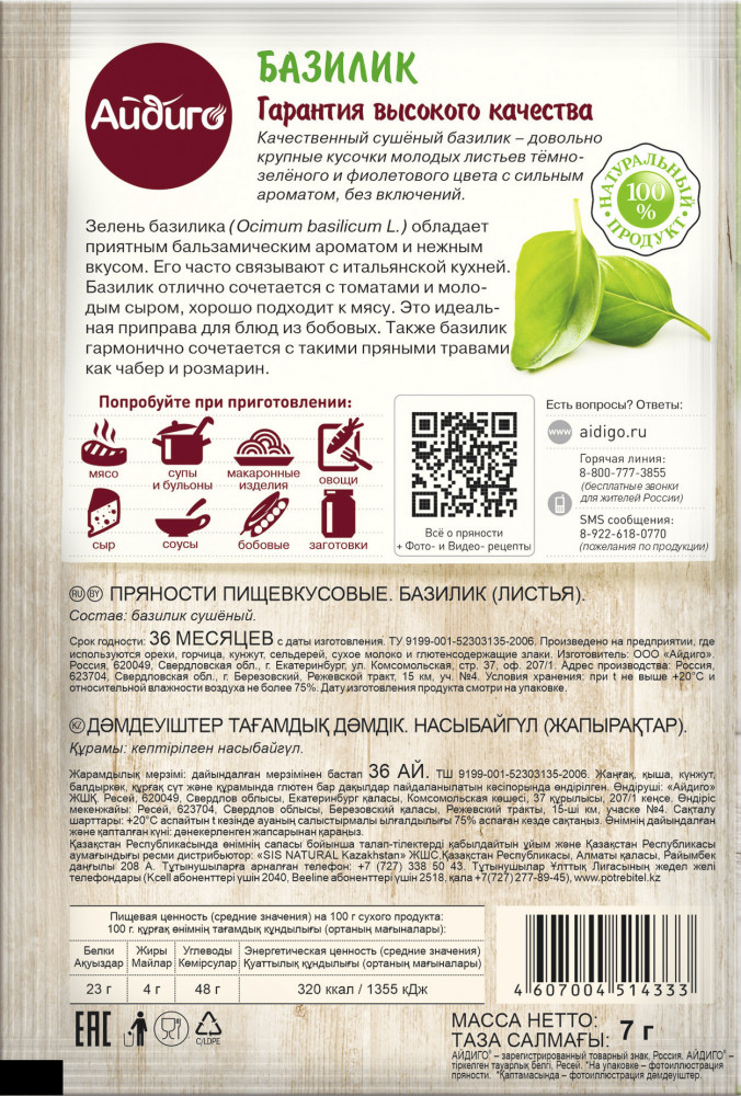 💳 Оплатить за товар можно при получении 🇰🇿 Есть бесплатная доставка по Казахстану от 1 дня 🎁 Копите бонусы с каждой покупки Серия: Пряные травы Зелень базилика обладает приятным бальзамическим ароматом и нежным вкусом. Его часто связывают с итальянской кухней, так как он отлично сочетается с томатами и молодым сыром, хорошо дополняет мясные блюда, считается идеальной приправой к блюдам из бобовых. Базилик хорошо сочетается с другими пряными травами, например, с чабером и розмарином. |