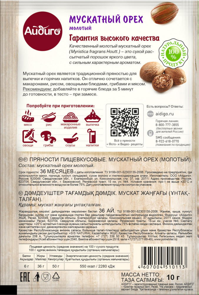 Айдиго Мускатный орех молотый+12