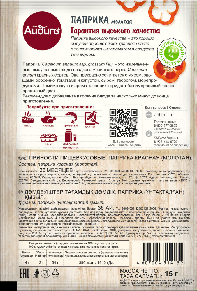 Айдиго Паприка молотая-20% +6