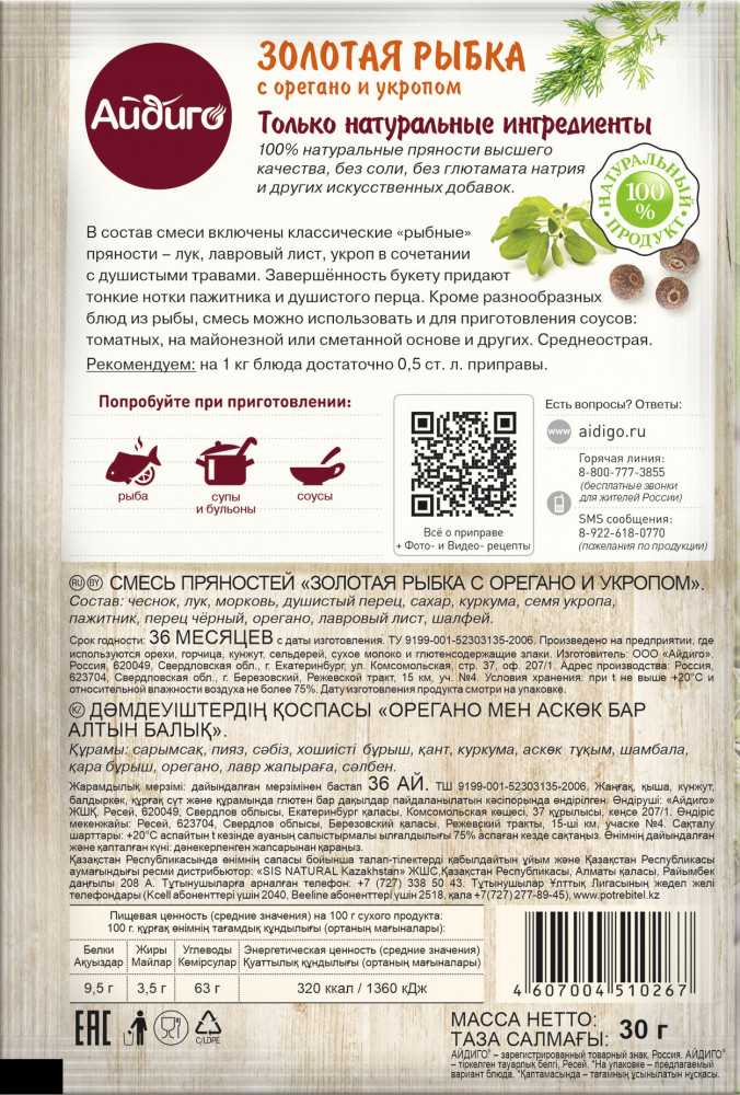 Айдиго Приправа «Золотая рыбка с орегано и укропом»В данный момент этот товар отсутствует в продаже. Возможно, у нас найдется аналогичный или похожий товар здесь. Серия: Приправы Приправа для рыбы подходит также и для креветок, а также для других морепродуктов. В составе смеси классические «рыбные» пряности — лук, лавровый лист, укроп в сочетании с душистыми травами. Законченность букету придают тонкие нотки пажитника и душистого перца. Средне-острая. Помимо разнообразных блюд из рыбы, смесь можно использовать и для приготовления соусов: томатных, на майонезной или сметаной основе. |