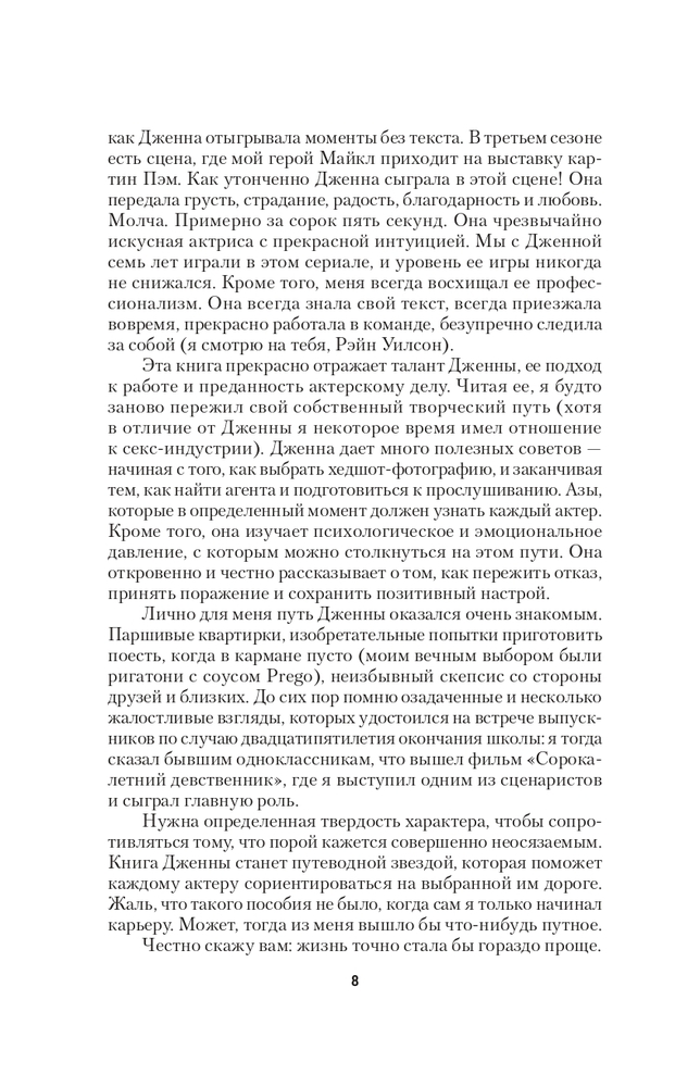 Руководство по выживанию для начинающего актера. От подготовки портфолио до съемок в фильмеВ данный момент этот товар отсутствует в продаже. Возможно, у нас найдется аналогичный или похожий товар здесь. Серия: Мастер сцены (обложка) «... в ту пору, когда все сбивало с толку, когда постоянно отказывали, мне бы очень пригодился человек, который «прокачал» бы меня, все расставил по своим местам, поделился аналогичными историями. Так что, если вы начинающий актер (а я полагаю, так оно и есть, раз вы читаете эту книгу), я бы хотела стать для вас как раз таким человеком». Звезда легендарного американского сериала «Офис», Дженна Фишер, когда-то тоже была начинающей актрисой. Провинциальная девчонка поехала покорять Голливуд, и ей это удалось! Но перед этим ей пришлось 8 лет получать отказы, браться за низкооплачиваемую работу и даже голодать. За это время она узнала, как устроена киноиндустрия, и решила поделиться своим опытом с другими молодыми актерами, которые только начинают свой путь. |