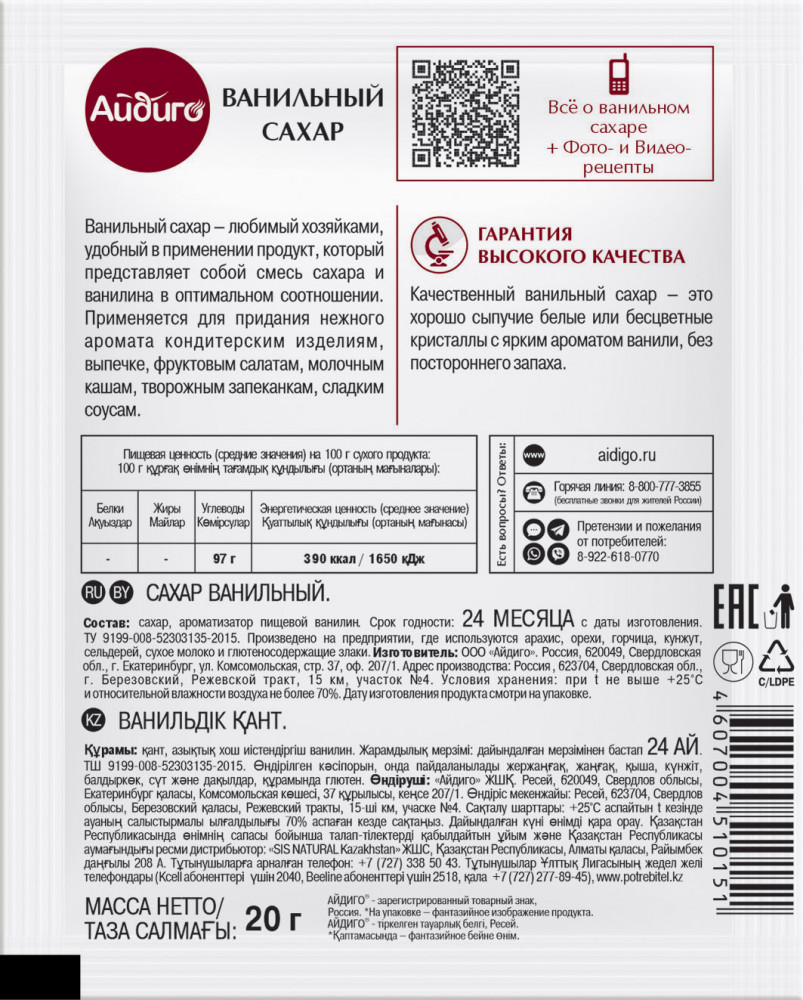 Айдиго Сахар ванильный+8 аромат вкус кристалики ваниль отсутствует