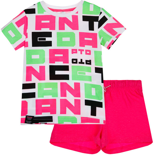 футболка: 95% хлопок, 5% эластан; шорты: 60% хлопок, 35% полиэстер, 5% эластан