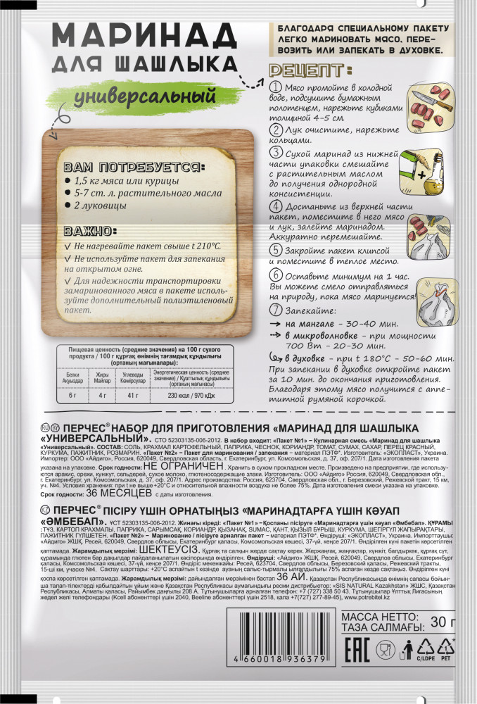 Перчес Маринад для шашлыка «Универсальный»+31 вкус запах объем резиновость