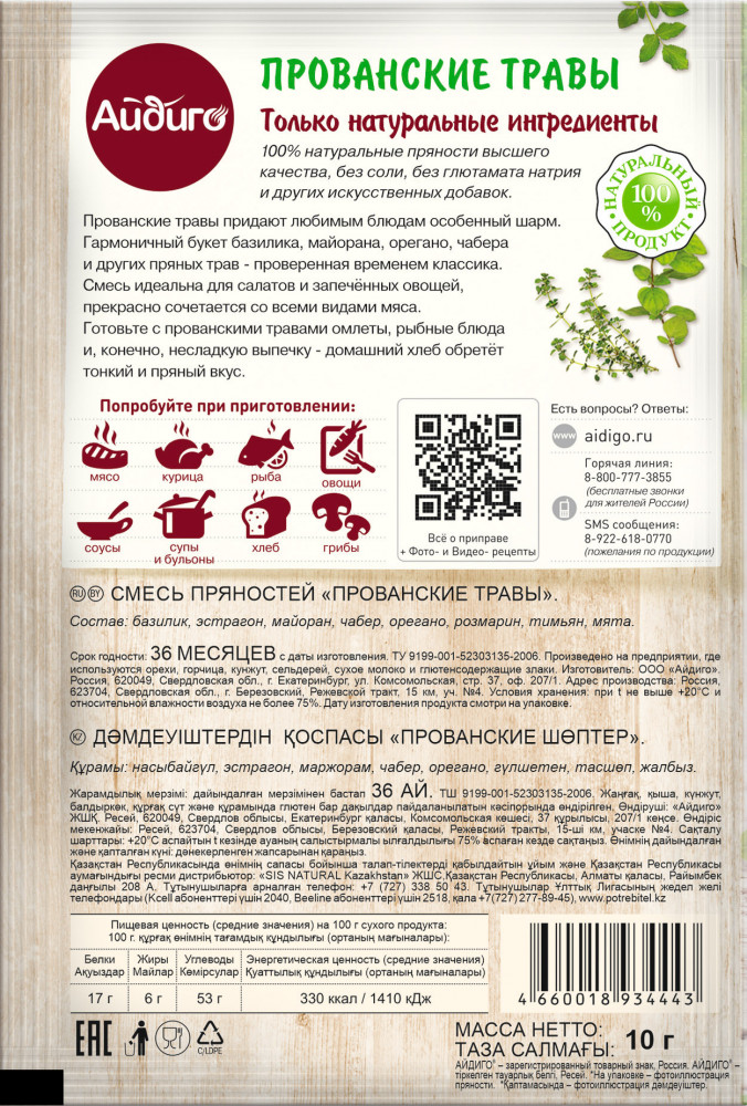 💳 Оплатить за товар можно при получении 🇰🇿 Есть бесплатная доставка по Казахстану от 1 дня 🎁 Копите бонусы с каждой покупки Серия: Пряные травы Изысканная смесь прованских трав — настоящая кулинарная классика! Она имеет прекрасное свойство сочетаться практически со всеми блюдами: с салатами, любыми видами мяса, запеченными овощами, супами и даже соусами. |