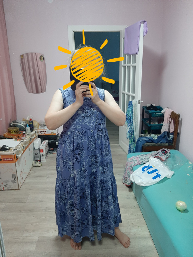 интересный сарафан, у меня верх 48, низ 50. не знала какой взять, взяла 48 размер и хорошо. Верх сел по размеру, низ платья очень свободный. расцветка красивая