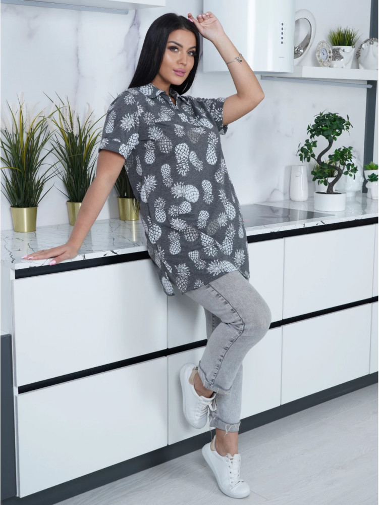 туника отличная. хорошо сидит по фигуре. ткань плотная. сами ананасики блестят, но не сильно