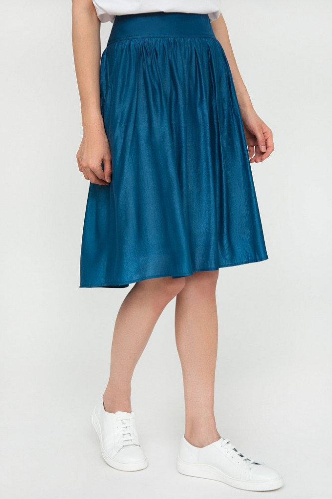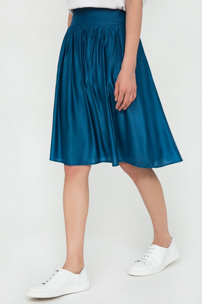 На свои параметры 48 размера, заказала 50 размер, по привычке, обычно многие производители маломерки сшьют, да и самой хотелось по свободней была юбка, короче перестраховалась, а зря. Я раньше часто покупала у данного производителя мужскую одежду, в которой полностью соответствуют размеры, и даже где то большемеры, ну или оверсайз. У меня если где то шире, то это бедра)), вот на них и держатся юбка, сильно спадает. При росте 1,60 юбка чуть ниже колен. Юбка имеет подьюбник, это плюс, иначе просвечивает, ткань с блестком, нарядная, с жакетами бирюзовых оттенков классно смотрится. Пришлось отказаться от юбки, куплю свой, 48 размер. Спасибо производителю и флип.