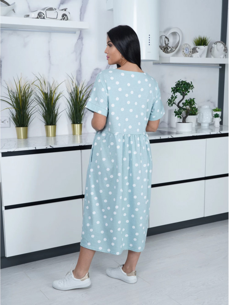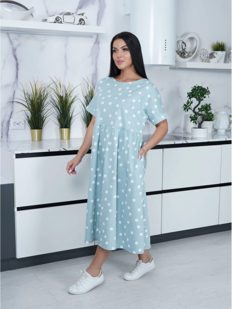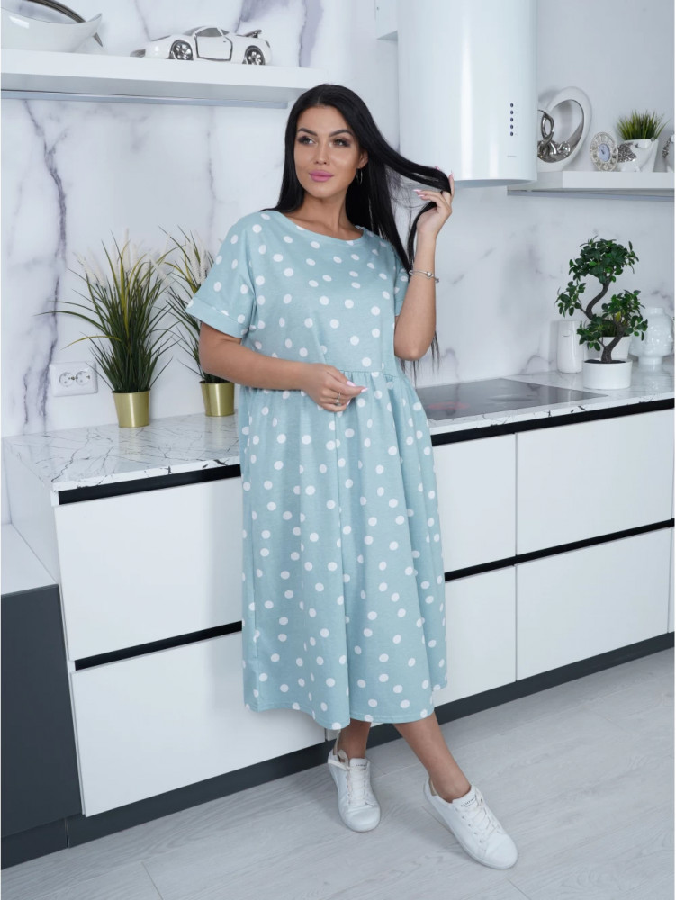Платье из приятной для тела ткани, цвет мята милый, пошив аккуратный, цена очень демократичная.