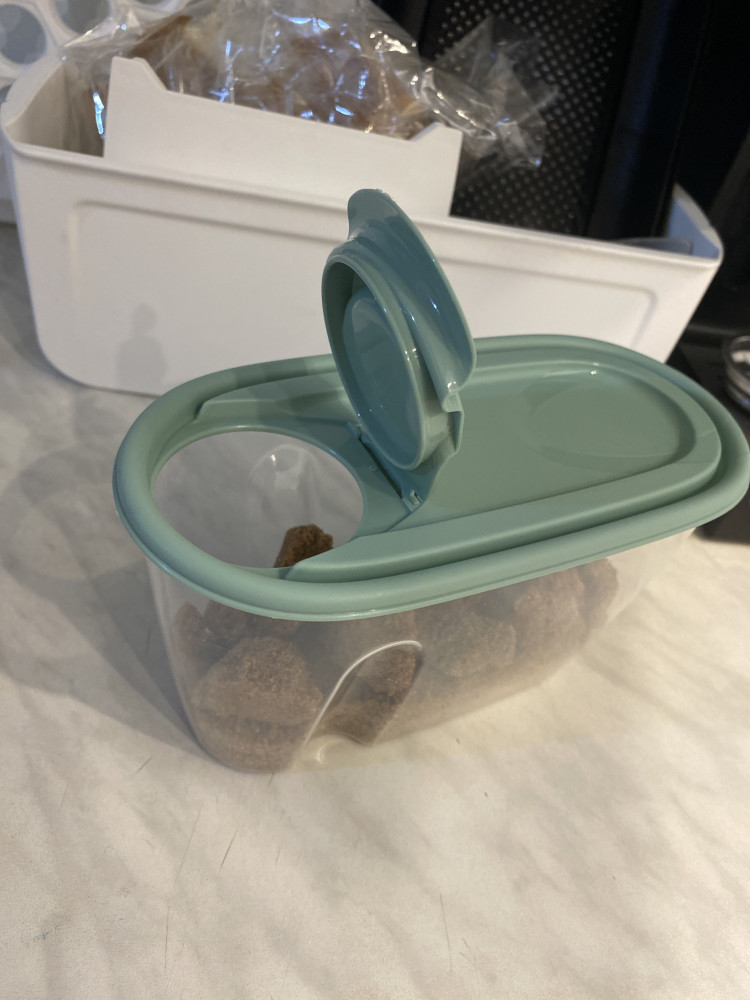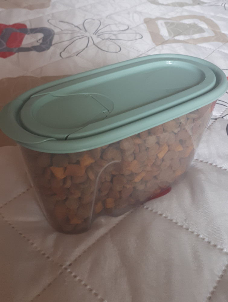 Понравилась ёмкость - объём соответствует, пластик отличный. Клапан не мешает, не болтается, когда насыпаешь, и плотно закрывается, очень удобно!
