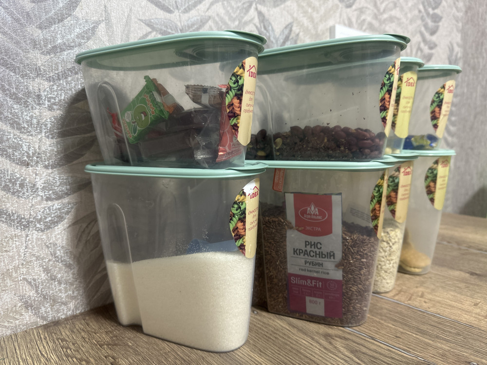 Нравятся эти контейнеры. У меня они объемом 0.9 и 1,5. Удобная крышка, плотно закрывает. И в шкафу стоят удобно, их длина как раз по глубине шкафа. Пластик без запаха, не тонкий. Мыла в пмм, все нормально. Выгодно брать по скидке. И конечно доставка отличная. Всегда быстро и хорошо упаковано.
