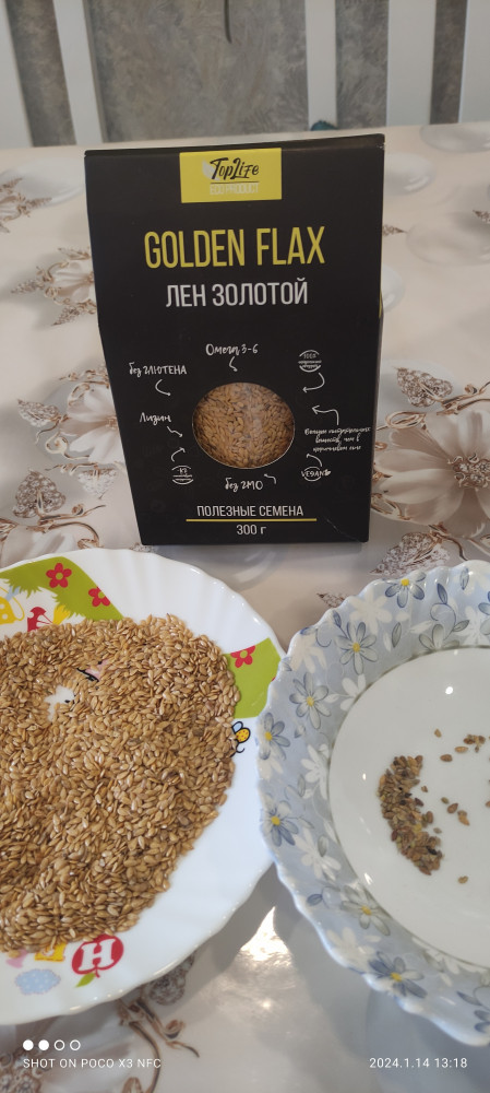 Сам товар ужасный, лен с каким то черным налетом, то ли плесень высушили, то ли какие то пораженные грибками семена. Очень жаль, брала для ребенка