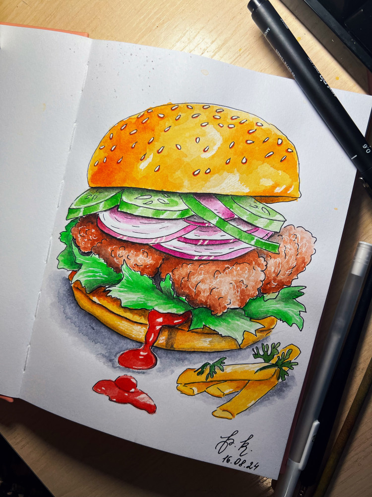 Отличный скетчбук, акварель ложится хорошо. Спокойно можно рисовать по-сырому - листы практически не сворачиваются.