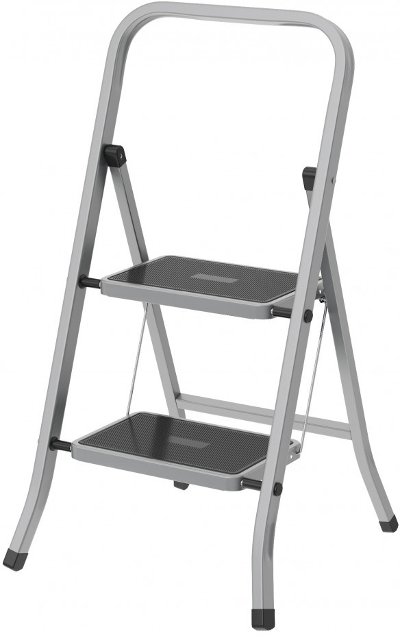 Стремянка изготовлена качественно, устойчивая, не тяжелая, хотя изготовлена из металла, ступеньки не скользкие, в сложенном положении занимает мало места. Данная стремянка была приобретена для не высокого помещения, для дома нужно приобретать стремянку, хотя бы с тремя ступеньками, так как высоты стремянки с двумя ступенями будет не достаточно для выполнения каких-либо целей по дому.