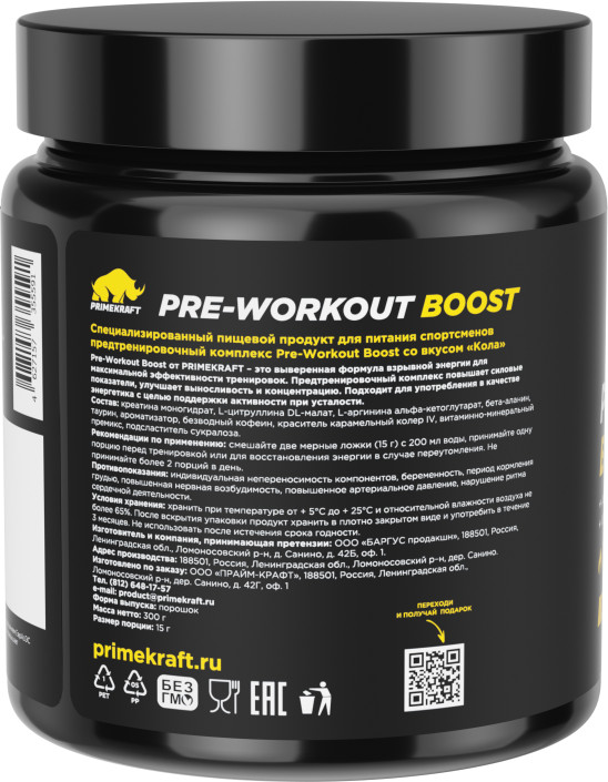 Pre-Workout Boost — это выверенная формула взрывной энергии для максимальной эффективности тренировок. Предтренировочный комплекс повышает силовые показатели, улучшает выносливость и концентрацию. Подходит для употребления в качестве энергетика с целью поддержки активности при усталости.