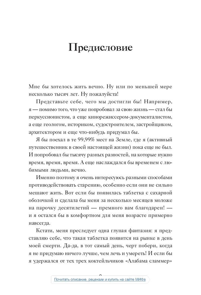 «Одна из главных задач ученых, занимающихся вопросами долголетия, заключается в том, чтобы отыскать надежные биологические часы. Это что-то, чем можно измерить и с помощью чего можно предсказать, как долго проживет человек, исходя из состояния его тела. Подобные часы нам действительно нужны, ведь старение занимает достаточно долгое время.».