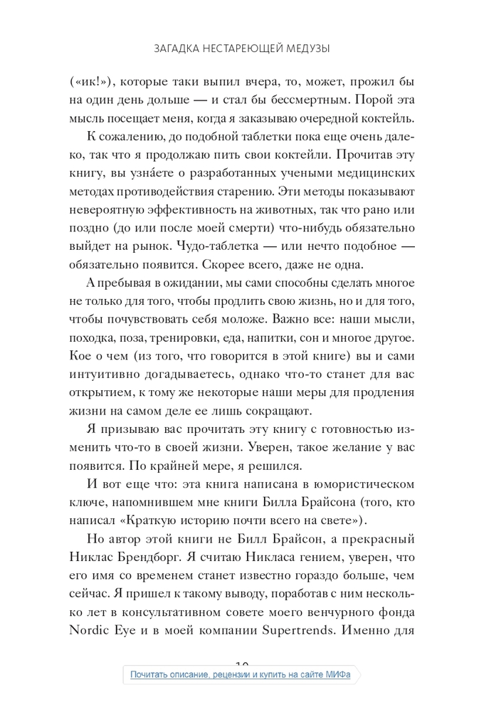 «Одно из них — медуза Turritopsis, размером она с ноготь мизинца и обитает в теплых морях. Если медузе Turritopsis что-то угрожает, например голод или внезапное изменение температуры воды, происходит нечто необычное: она возвращается в стадию полипа, как если бы бабочка снова становилась куколкой. А потом «вырастает» заново.».