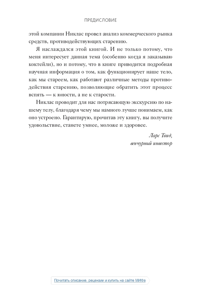 «Нам хочется верить в то, что продолжительность жизни заложена генетически, однако на самом деле это не так. Когда ученые убирают из исследования момент выбора похожих на нас людей, наследуемость снижается до уровня 0,1. Таким образом, от генов почти ничего не зависит. И это очень хорошая новость, ведь она означает, что мы сами можем повлиять на то, сколько проживем.».