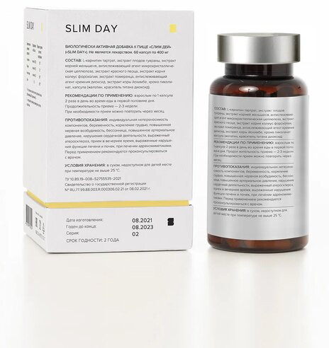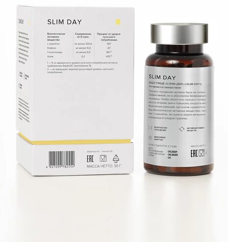 В данный момент этот товар отсутствует в продаже. Возможно, у нас найдется аналогичный или похожий товар здесь. Slim day — похудение и энергия на весь день. Содержание экстрактов померанца и коры йохимбе способствует повышению скорости метаболических реакций, не оказывая отрицательного воздействия на сердечно-сосудистую систему.