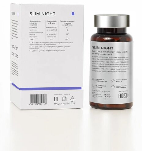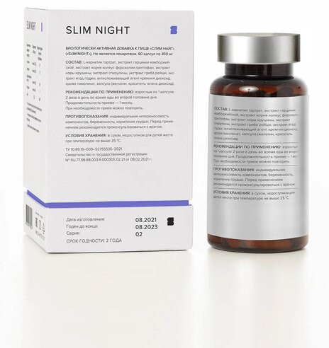 В данный момент этот товар отсутствует в продаже. Возможно, у нас найдется аналогичный или похожий товар здесь. Slim night — похудение и очищение во время сна. Гарциния камбоджийская вместе с пиколинатом хрома препятствуют образованию избыточного холестерина. Биодоступная форма L-карнитина ускоряет усвоение и окисление жиров, а совокупность сразу нескольких экстрактов помогает очистить организм.
