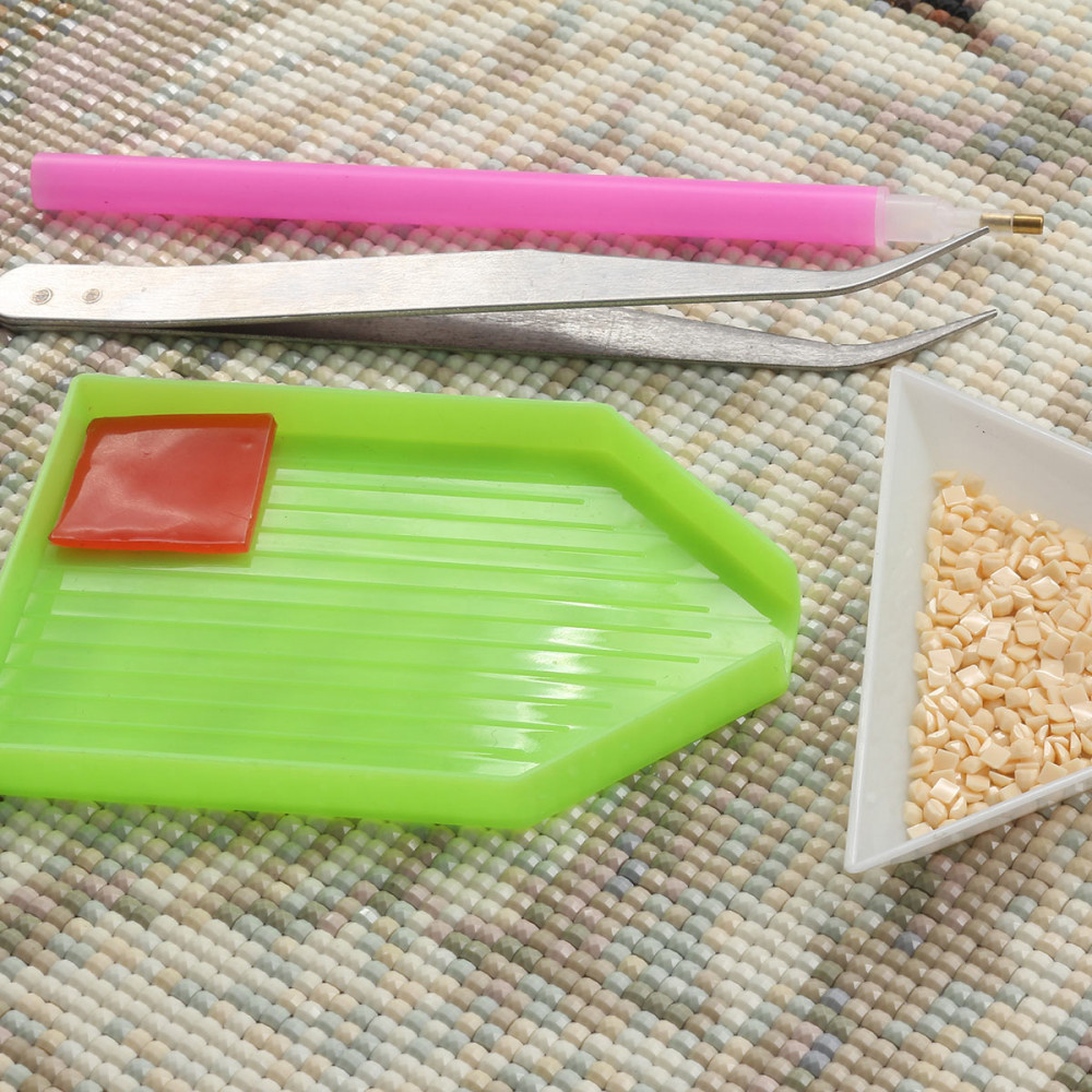 Чтобы удобно организовать рабочее пространство, рекомендуем использовать специальный станок для алмазной мозаики. Полотно на станке не сомнется и не свернется в рулон.