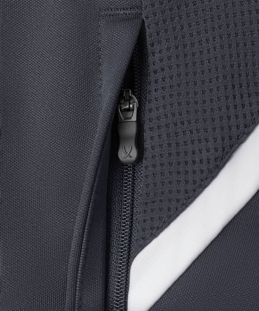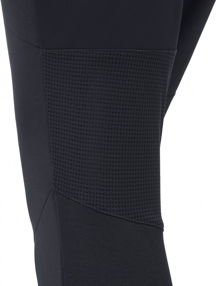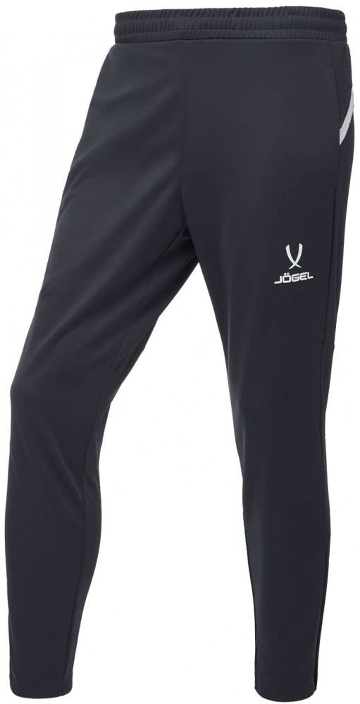 Сочетание трех видов высокотехнологичной ткани учитывает все потребности спортсмена. Сетчатые вставки, расположенные на фигурной кокетке сзади и на задней поверхности колена, обеспечивают качественное воздухоотведение в местах, требующих дополнительной вентиляции. Идеальное прилегание достигается использованием рубчатой ткани на задней поверхности брюк, что позволяет спортивным штанам точно подстраиваться под движения тела, а для оптимальной посадки спереди на колене проработано решение в виде вытачек. Основная ткань имеет специальное переплетение «Double Weave». Эластичный пояс надежно фиксирует изделие на бедрах при помощи завязок-шнурков. Боковые карманы застегиваются на молнию, а с левой стороны размещена контрастная вышивка «Jögel».