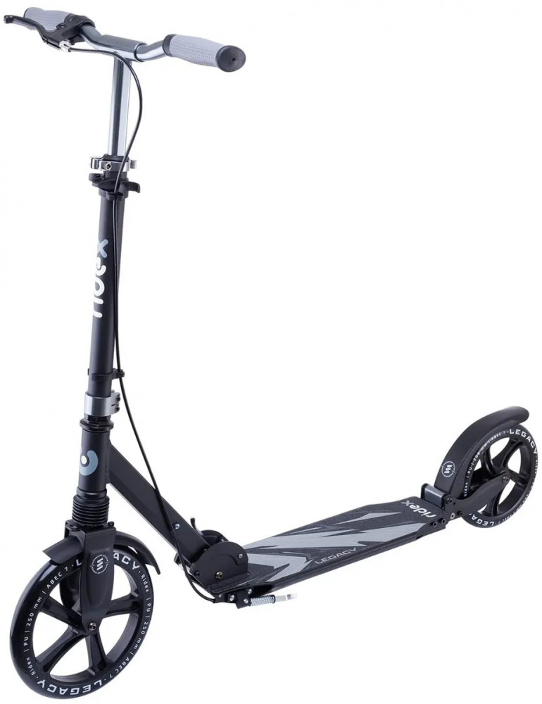 Надежная и легкая алюминиевая конструкция самоката безопасна и выдерживает вес до 100 кг. Переднее колесо имеет увеличенный диаметр 250 мм, заднее — 200 мм. Подобное сочетание колес позволяет сократить время в пути и обеспечить самокат отличной скоростью и маневренностью. Подшипники ABEC-7 добавят вам разгона и наката на городских улицах, а удобный складной механизм вкупе с ремешком для переноски придадут мобильности при перемещении самоката. Удобный и надежный ручной тормоз позволить избежать неприятных столкновений.