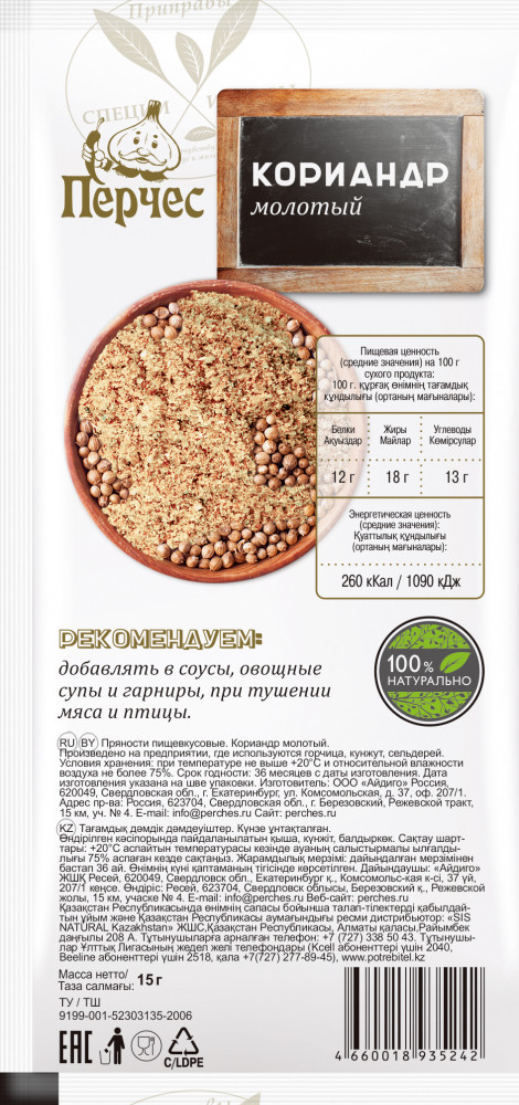 Перчес Кориандр молотый+10 мелкий помол аромат удобство помола