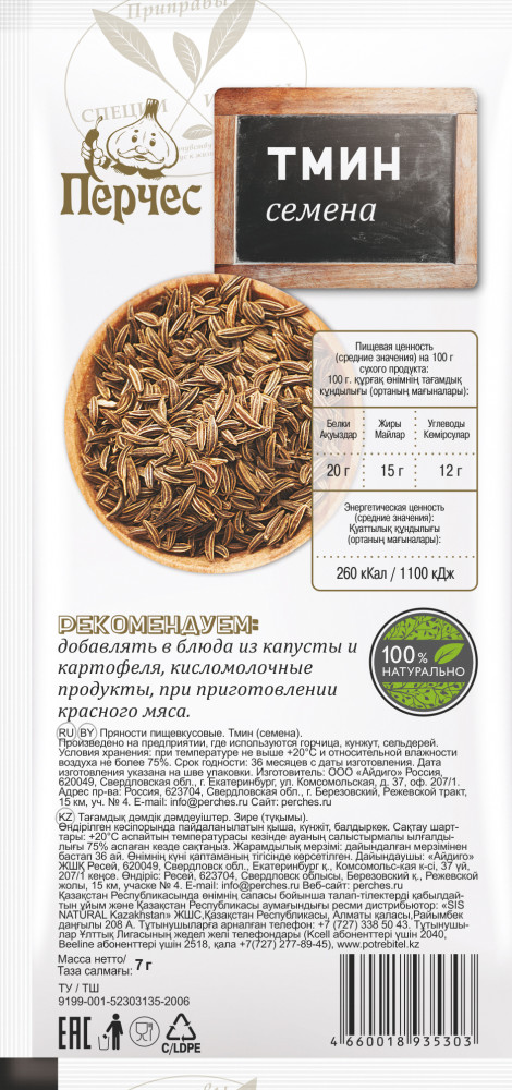 💳 Оплатить за товар можно при получении 🇰🇿 Есть бесплатная доставка по Казахстану 🎁 Копите бонусы с каждой покупки Семена тмина как пряность давно завоевали любовь гурманам. Их теплый и слегка перечный аромат не спутать ни с чем. Тмин считается классическим дополнением к выпечке из ржаной муки, а также к блюдам из сыра. Он прекрасно подойдёт к жирному мясу и птице, к рагу из овощей и картофелю. Его добавляют в капусту — свежую и тушеную, жареную и квашеную, используют для ароматизации хлеба и сыров. |