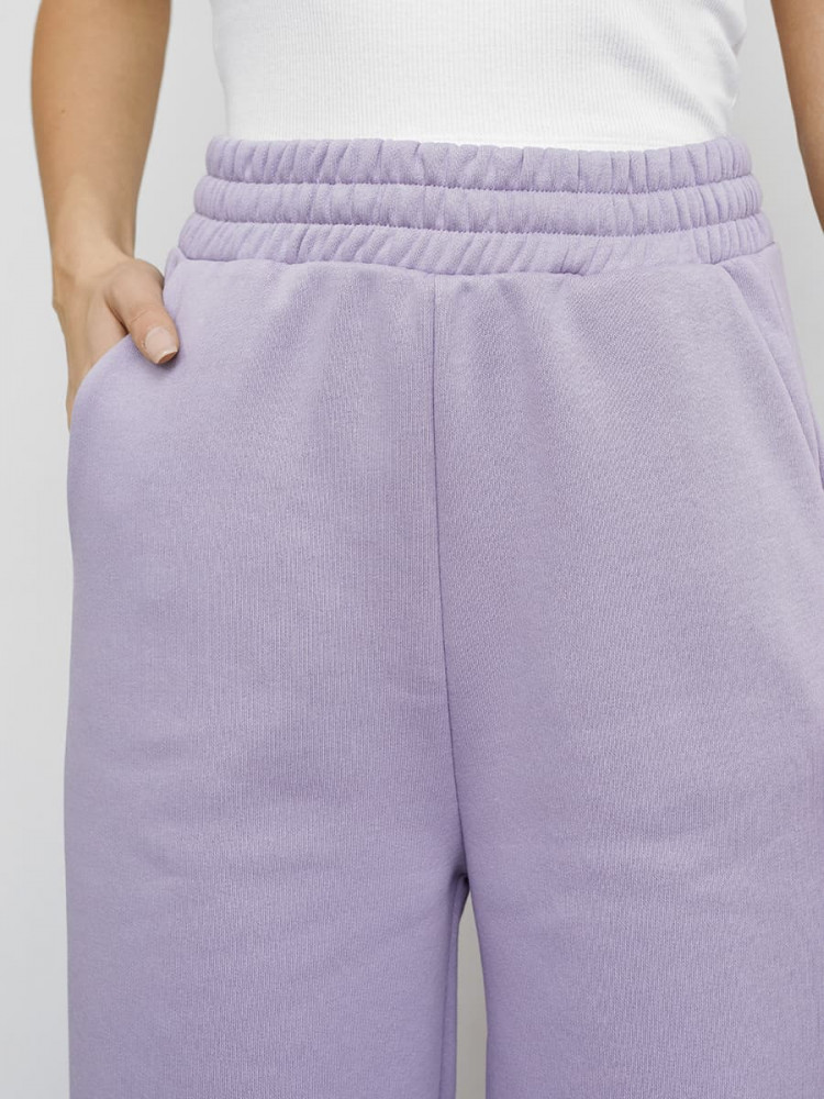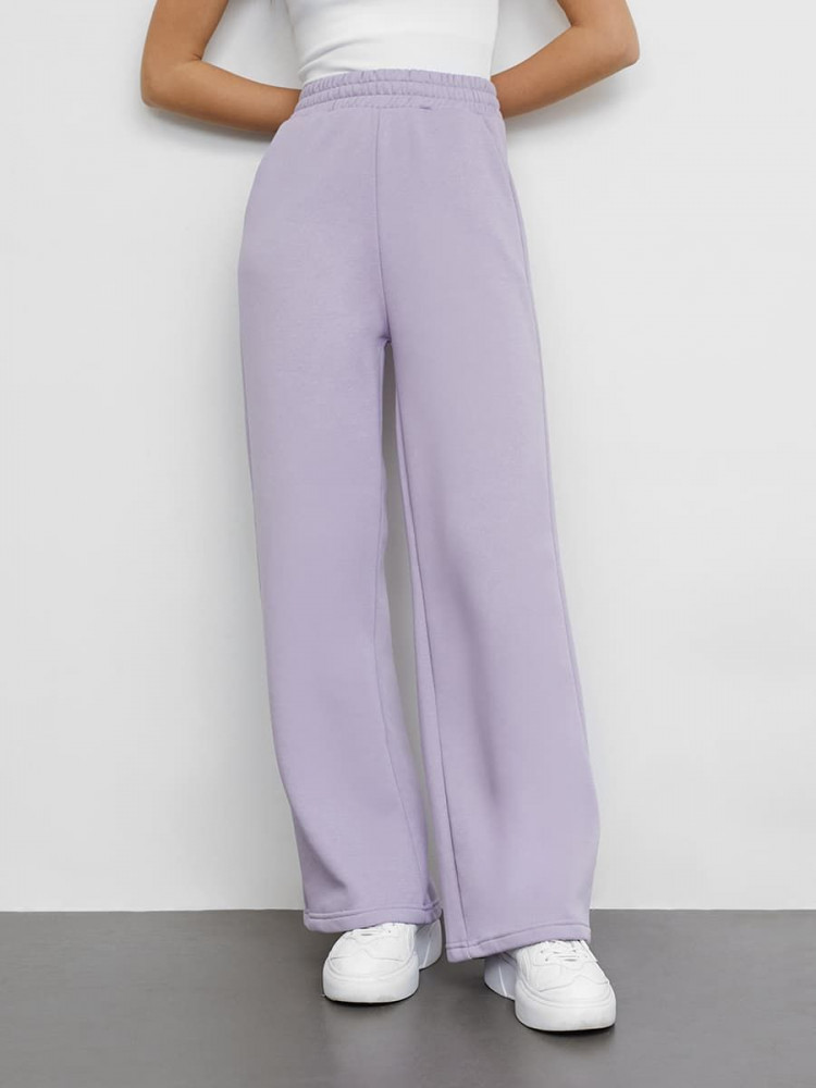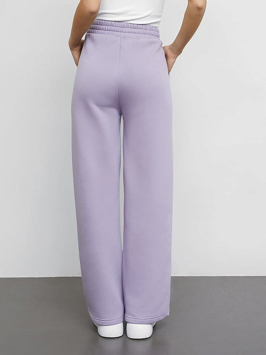 Брюки расклешенного силуэта из трикотажного футера с теплым подчесом. Пояс с эластичной тесьмой внутри и регулировочным шнуром-завязкой. Есть боковые карманы. Эти брюки — идеальный компонент для вашего стильного образа!