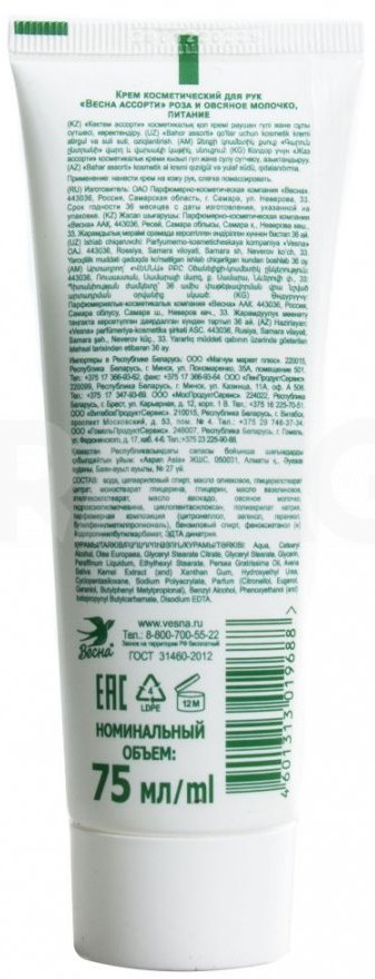 Отзывы «Крем для рук с ароматом розы и овсянного молочка «Ассорти»»