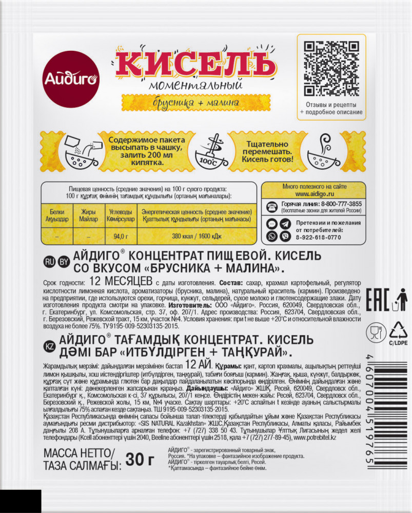 Айдиго Кисель моментальный со вкусом брусники и малины